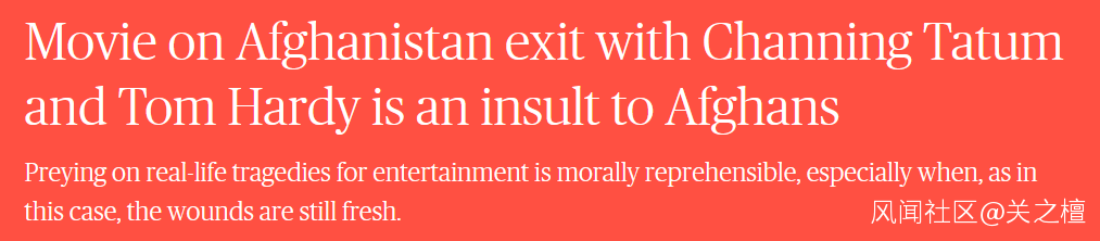 這部影片官宣後,NBC新聞發文稱拍這種電影是對阿富汗人的侮辱,“利用現實生活中的悲劇來娛樂,在道德上應該受到譴責。尤其是在這種傷口還未完全癒合的情況下。”
