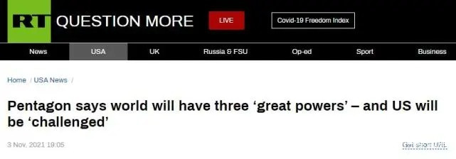 據今日俄羅斯電視台(RT)報道,當地時間11月3日,美國參謀長聯席會議主席馬克·米利在阿斯彭安全論壇上發表講話時承認,美國佔支配地位的時代可能已經結束。