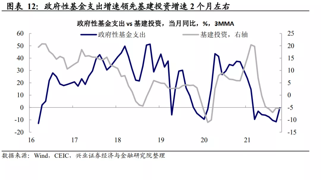 ****五、****政府性基金支出增速領先基建投資增速約1-2個月,明年初基建有望回暖。