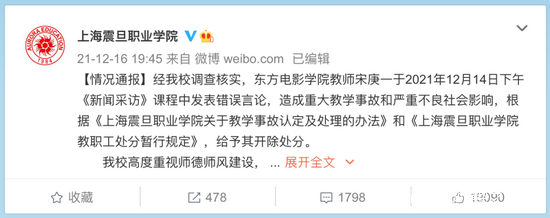 但是,在公領域和專業時間,無論是宋老師也好,還是其他的教師、研究人員也好,這種“學術自由”就要受到一定的限制,起碼必須接受“行業規範”或學校的規定,比如説,並非所有的大學生或博士生一拿到畢業證書,就可以自動成為一個大學或中小學的老師,除了要經過各種考試和挑選之外,起碼要取得“教師資格證”,即使你已經拿到“教師資格證”,入職了,也要接受學校的課程安排,不是你想上什麼課就上什麼課,想幾時上課就幾時上課。就宋老師而言,她是武漢大學“新聞與傳播專業”的畢業生,她被上海震旦學院錄用,必定是作為“新聞與傳播專業”的人才錄用進去的,而不是作為“中國歷史專業”的人才被錄用的,那麼,接下來,“上海震旦學院”給她安排的課程,也必定侷限於“新聞與傳播專業”的相關課程,而不會是“中國史”或“世界史”之類的課程。也正因為如此,宋老師發表那段議論的時間,是在震旦學院給她安排的《新聞採訪》課堂上,而不是《中國近代史》的課堂上,更不是某個歷史專業的學術研討會上,那麼,此時此刻、此種場景下的宋老師,就只能享受她在“新聞與傳播專業”方面的“學術自由”,旁徵博引、圖文並茂、盡情發揮,都行,卻不應該享受“歷史學”方面的“學術自由”,因為她沒有這個資格!