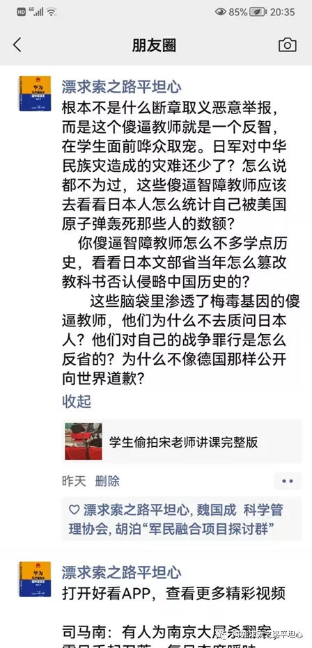 令人稱奇的是,這個宋某居然是武漢大學新聞與傳播學院畢業的碩士,而此前,同樣是武漢大學新聞與傳播學院畢業的博士馮齊海在社交媒體上辱罵同胞,公然為日本侵略者唱讚歌……