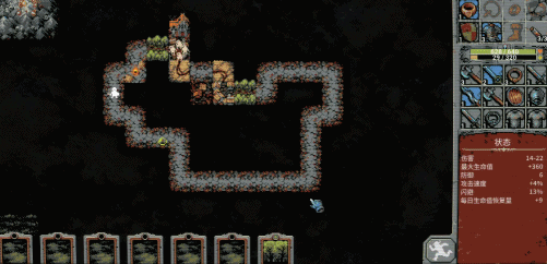 而且卡牌在地圖上的擺放還能達到連鎖隱藏效果,比如把九個石塊堆一起就會形成一座山,把村莊和吸血鬼宅邸放一起就會形成被洗劫的村莊等,讓遊戲具有相當高的自由度和探索空間,一定程度上也算是種模擬經營的玩法了(大概吧)。