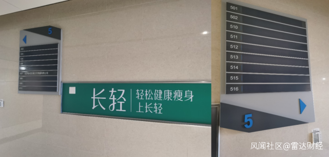 有意思的是,5層一出電梯門,就能看到“輕鬆健康瘦身上長輕”的標語。