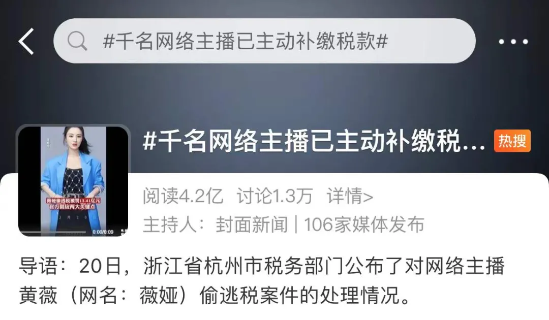 距離2021年結束還沒有多少天的時候,薇婭被曝出偷漏税行為,追繳、加收滯納金和罰款的總金額達到13.41億元。
