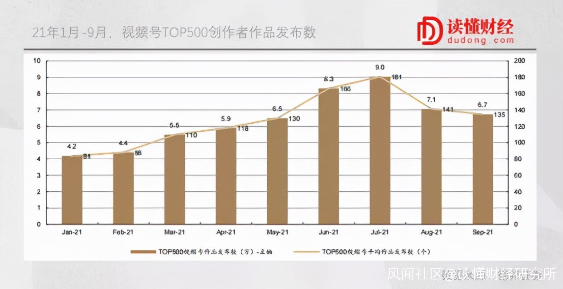 根據德邦證券數據,今年1-9月份,視頻號TOP500博主發佈作品數量雖然呈上升趨勢,但進入7月份後,發佈作品數量有所回落。