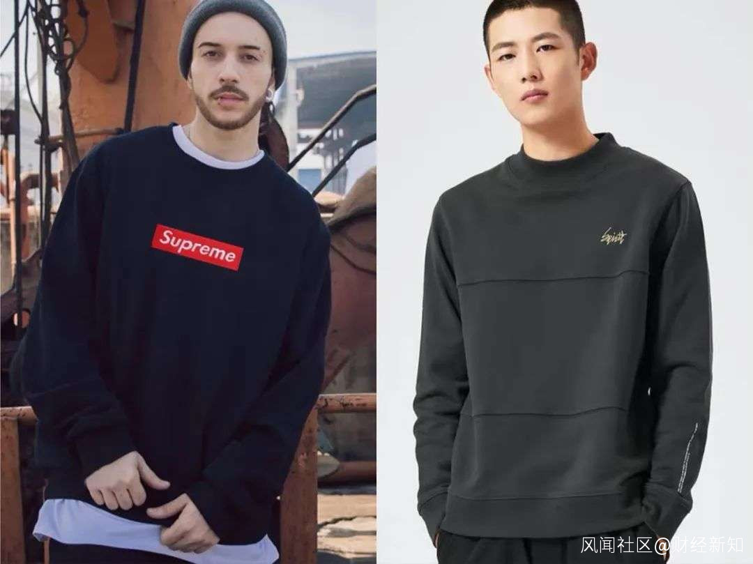 左為Supreme的衞衣;右為黑鯨的衞衣