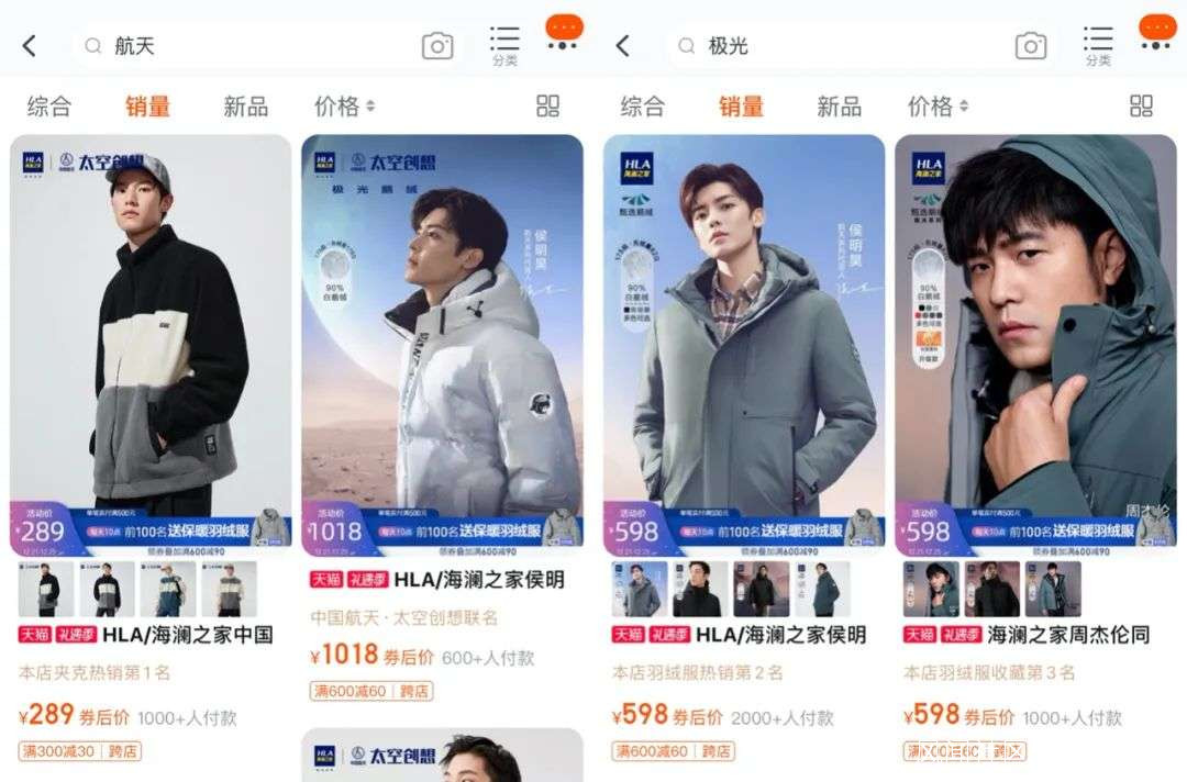 95後男愛豆侯明昊代言的航天系列,是海瀾之家推出的面向Z世代羣體的服裝系列。在該系列產品的評論區中,多是女性消費者評價,表示是為兒子、弟弟、男友等男性親友購買。但目前,該系列服裝月銷量普遍在1000以下。周杰倫和其他幾位明星加持的極光系列,月銷量也普遍在2000以下。比起網紅店動輒幾萬的銷量,海瀾之家的線上銷量可謂慘淡。