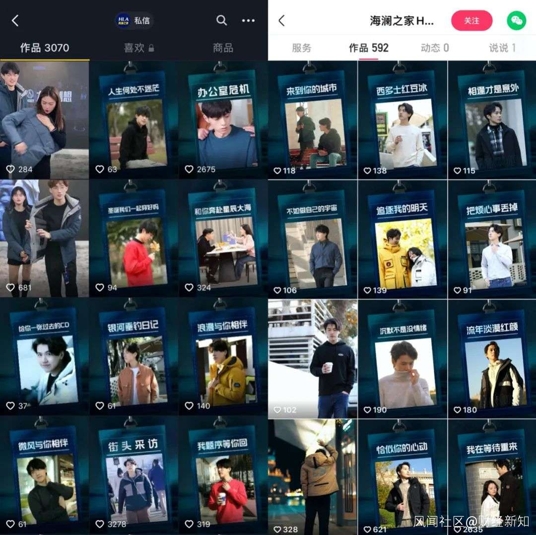 海瀾之家抖音和快手的官方賬號的短視頻作品中,除了直播片段以外,多為年輕男模特的寫真型短視頻,所展現的衣服款式也普遍迎合年輕人審美,不見“大叔”色彩。