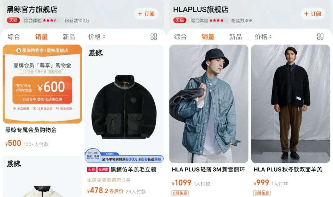 面向年輕消費者的兩個子品牌黑鯨和HLA PLUS,線上表現則更為差勁。2017年誕生的潮牌黑鯨,目前天貓官方旗艦店粉絲數為102萬,不及母品牌的十分之一。旗艦店內產品數量過千,但目前銷量最高的產品的月銷量僅為30,大部分產品銷量為個位數甚至無銷量。
