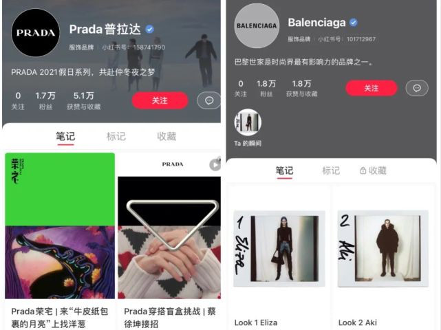 前不久,奢侈品牌Prada正式推出了官方小紅書賬號,目前已擁有超過1.7萬的粉絲。而Balenciaga也在本月正式改版小紅書賬號,刪除了之前發佈的筆記,一次性釋出了Balenciaga秋季22系列的相關新造型,基本延續了其在ins的內容形式。