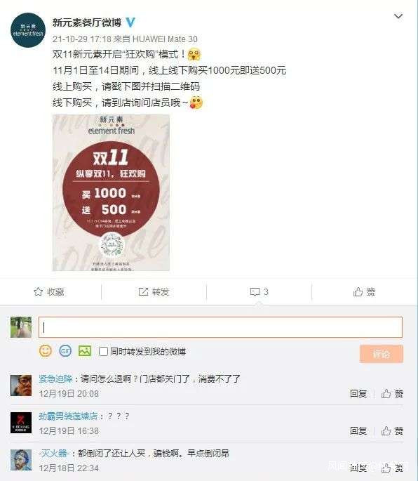 其實消費端的反饋往往就是門店經營出現問題的最直接真實的反應。而新元素的經營狀況不佳其實早已有跡可循。