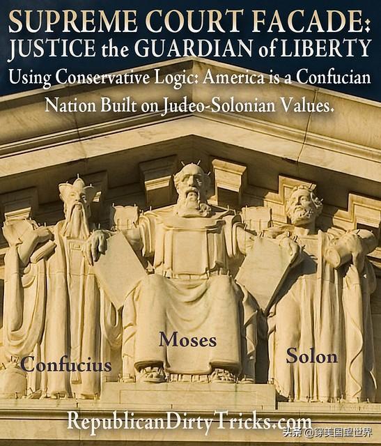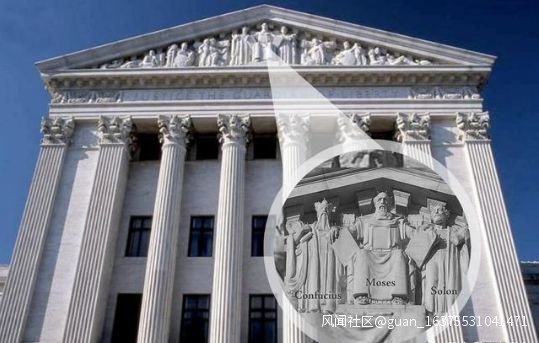 美國最高法院的大門的門楣上有我國的“聖人”孔子的雕像(見下面的圖)