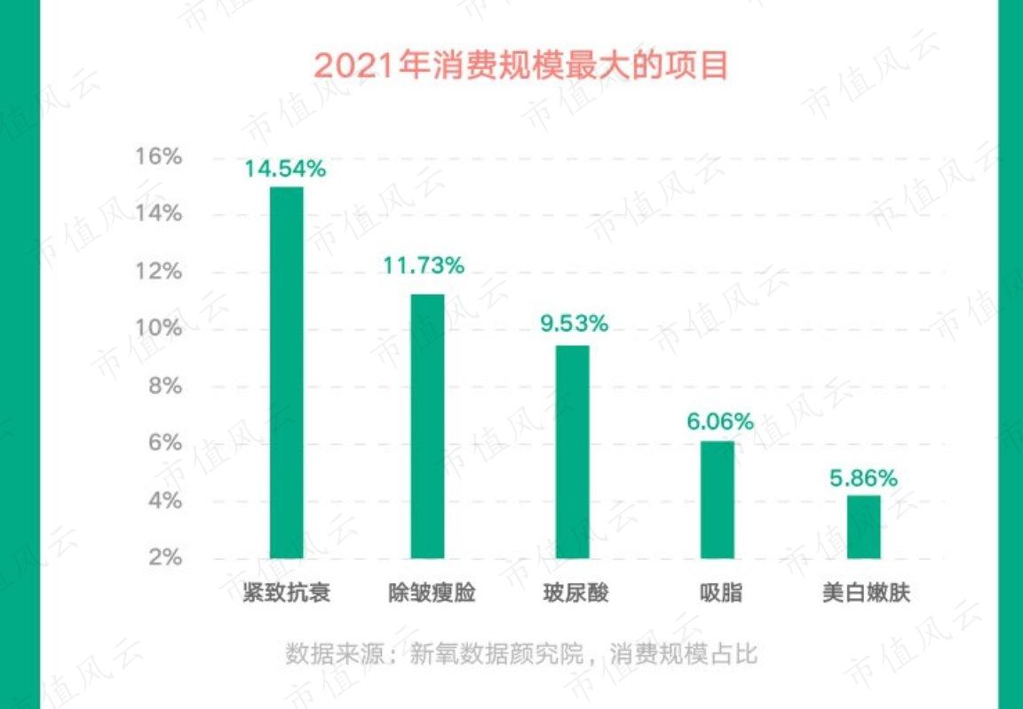 醫美消費市場的快速發展,離不開現代醫美產品、技術和服務的革新。據新氧數據顏究院數據,2021年,以光電儀器類消費為主的抗衰類消費,佔據醫美市場消費規模最大的比例;而以肉毒素類消費為主的除皺瘦臉類消費,成為2021年消費人數最多的醫美消費類別。