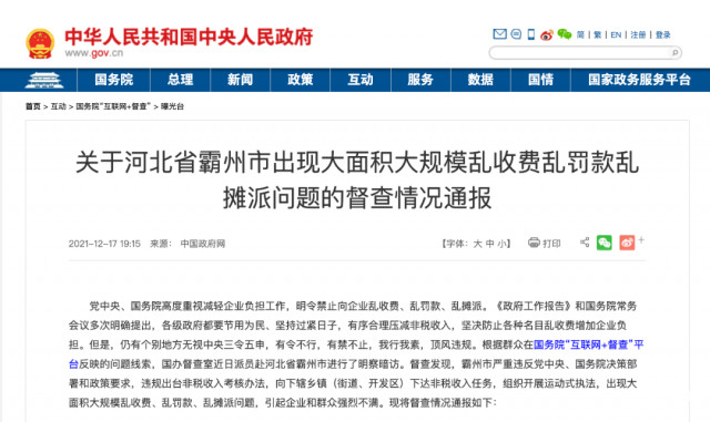 今年10月,為彌補財力緊張,霸州市向下轄15個鄉鎮分解下達了3億的非税收入任務,導致各鄉鎮以安全生產執法檢查等多種名義,對中小微企業和個體工商户進行集中罰款、攤派、收費。
