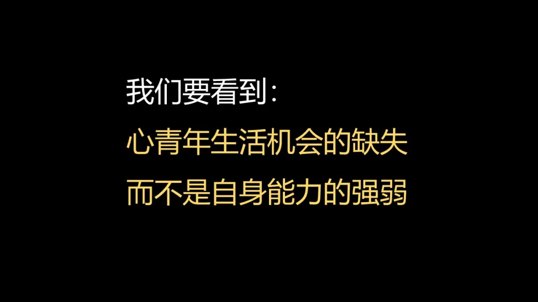 為心青年開展服務,不是一蹴而就的,要認識他們、瞭解他們的真實需求。平等的對待他們,不要因為他們有身心的殘損或障礙,只是施以同情和憐憫;也不要因為所謂的外星球的孩子或者天才論而去浪漫化他們。在實際的生活中,他們更需要的是平等的對待。**“沒有他們的參與,不要做他們的決定”。**畢竟,他們在成為心智障礙者之前,首先是一個人,一個努力、勇敢、用心生活的青年人。