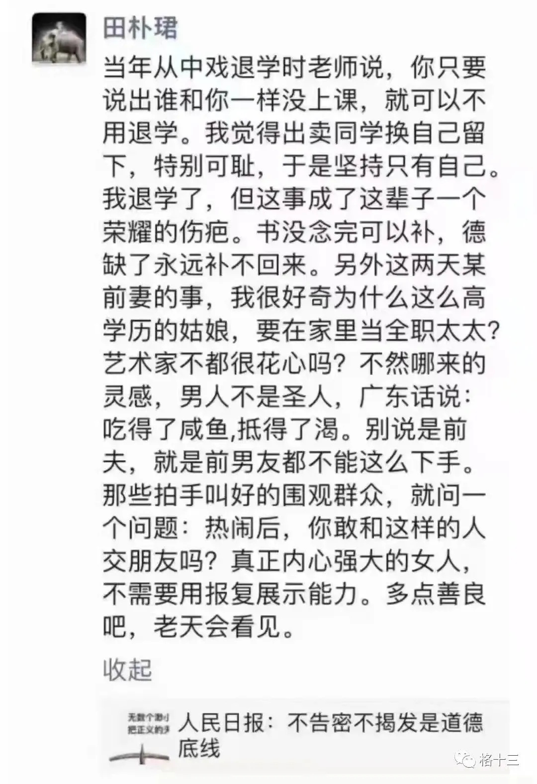 “內心強大的女人,不需要用報復展示能力。”——這還真沒轍,畢竟田女士“展示能力”的那種高級方式,又不是每個女人都會的。