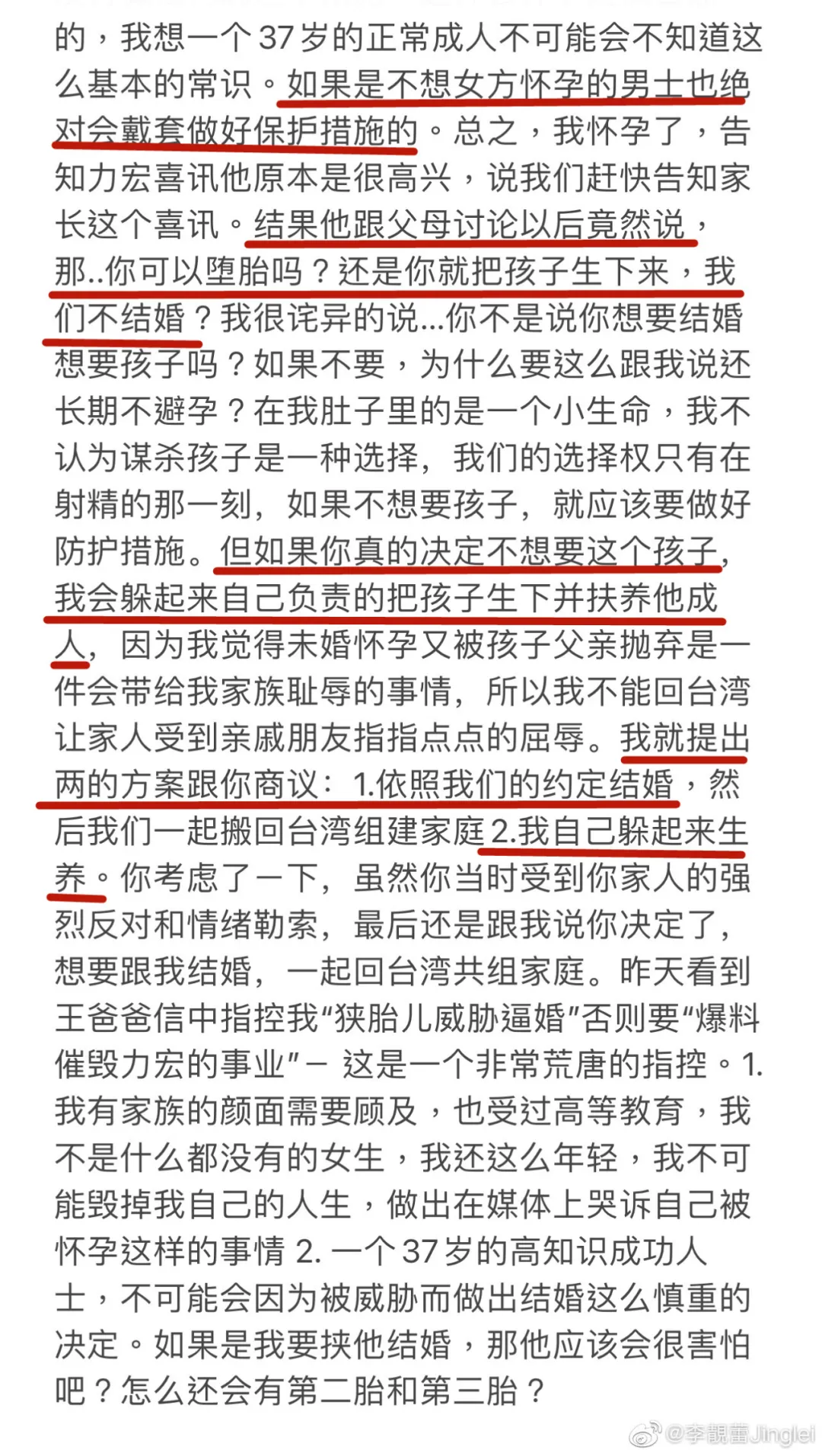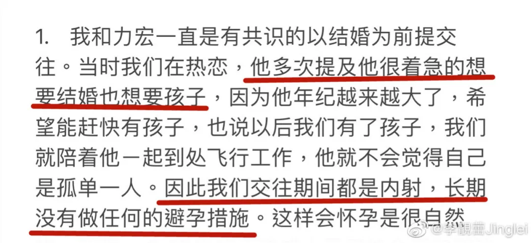 在李靚蕾和王力宏交往期間,是王力宏多次提及想要孩子,想要結婚,每次他都無套。