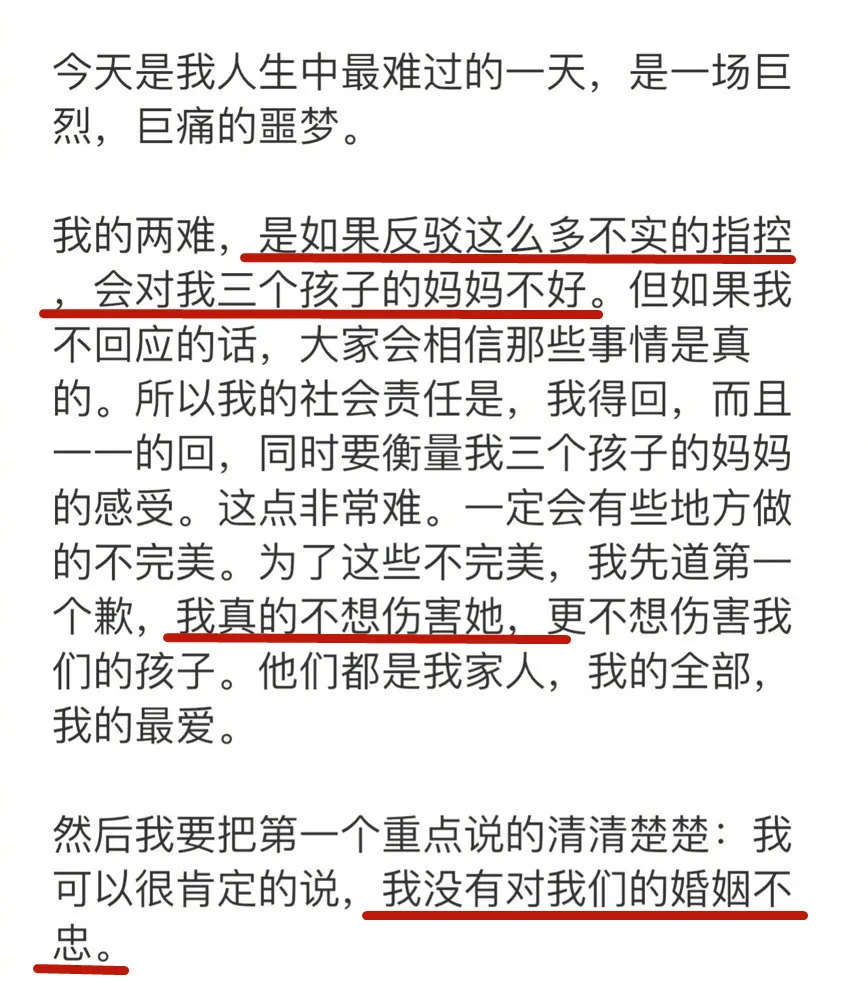 開頭還是那熟悉的綠茶味,斬釘截鐵説自己在婚姻裏沒有不忠。