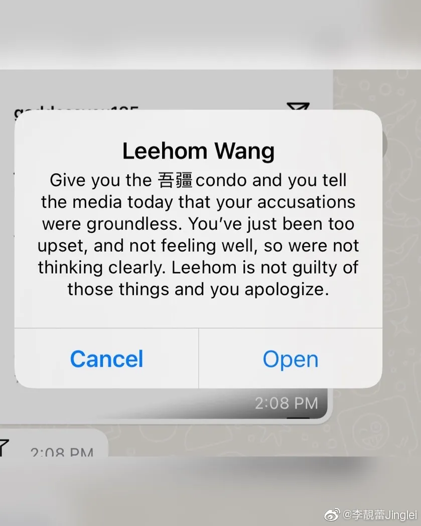 躲在爸爸背後的王力宏,為了自保還想用錢收買李靚蕾,説把房子給她,讓她在媒體面前道歉。
