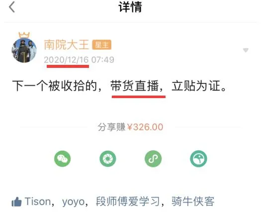 薇婭有今天,大王早在2020年就料到了,並在知識星球立帖為證。