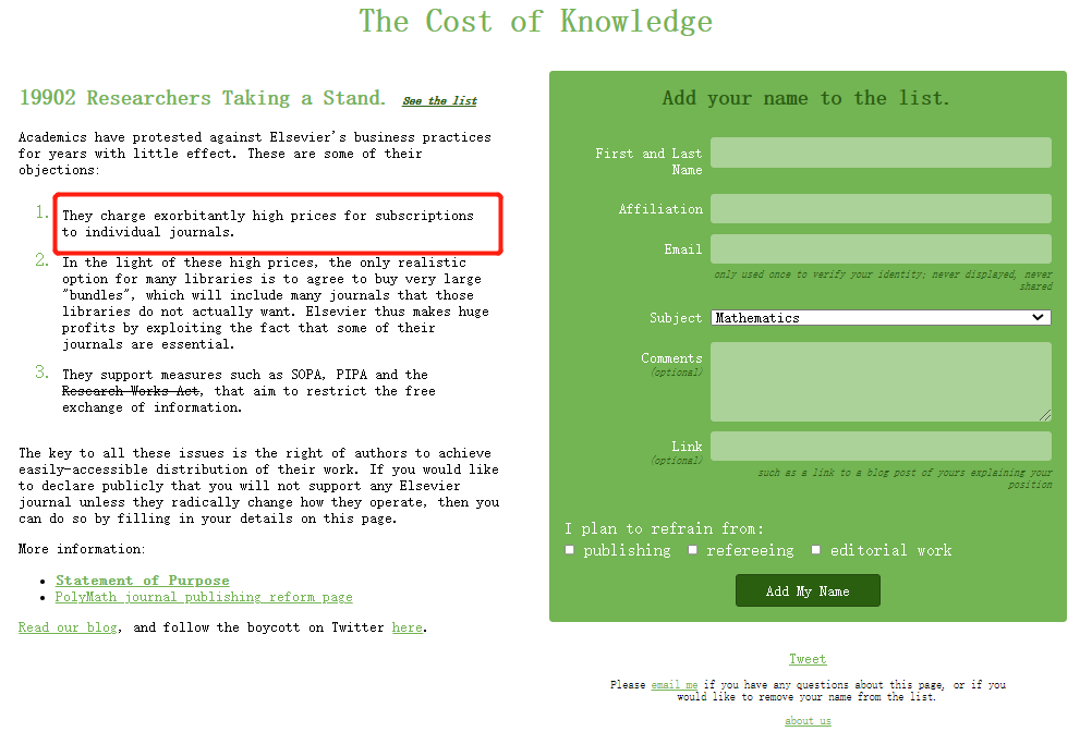 愛思唯爾的高額收費也遭到了許多的學者的抵制