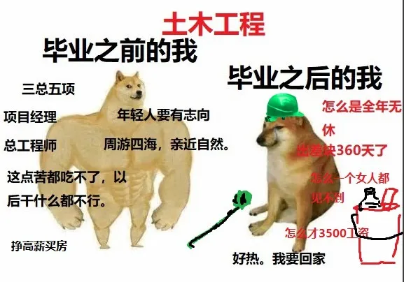 有一張圖非常傳神地表達了,土木工程專業的同學們,畢業前後的狀態: