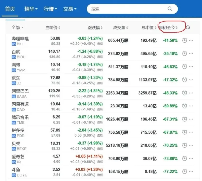 説是股災也不為過吧,我截了圖,大家看下“年初至今”這一欄就懂了。