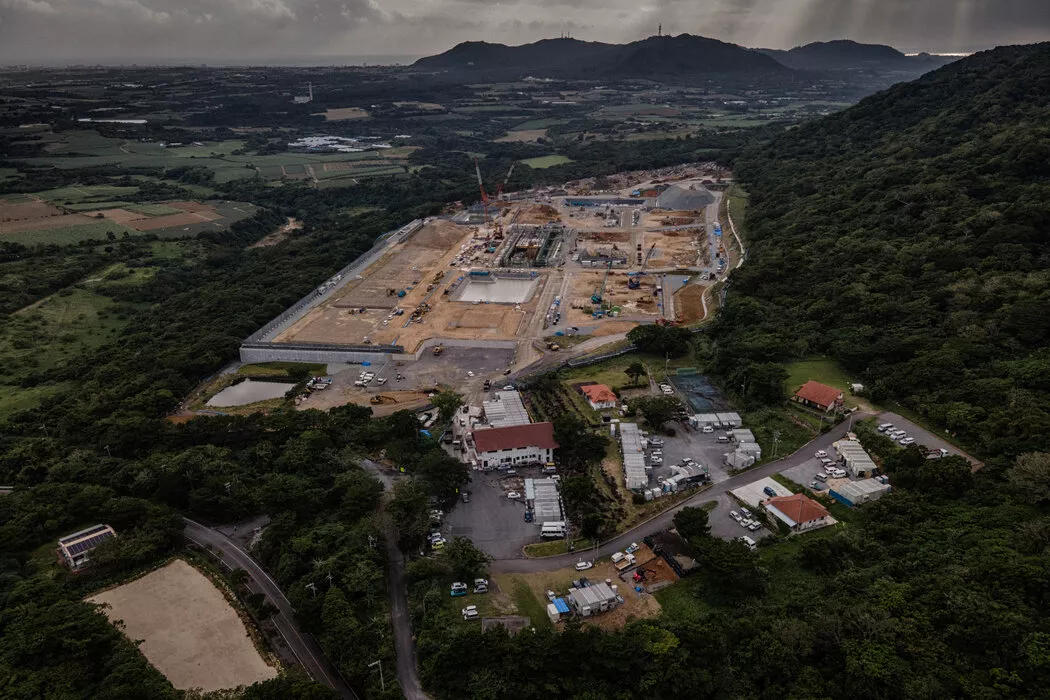 照片的“主角”,是日本沖繩縣石垣島上一座在建的陸上自衞隊導彈基地。從照片上看,施工現場相當忙碌,運輸車、吊車和腳手架等各就其位,基地大致輪廓已經顯現。