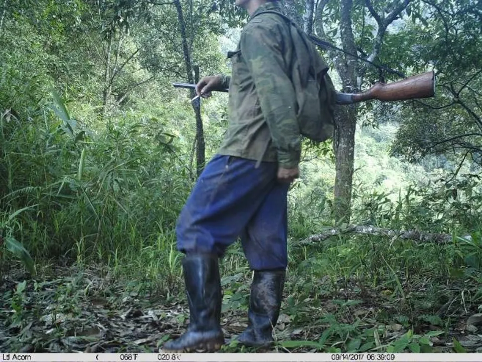 除了生境破壞,我們的紅外相機在西雙版納還有老撾豐沙裏都拍到過拿槍的人,盜獵的威脅仍然存在。據説今年年初還有一夥武裝作案進入中國盜獵的,他們有四支AK和四支半自動。