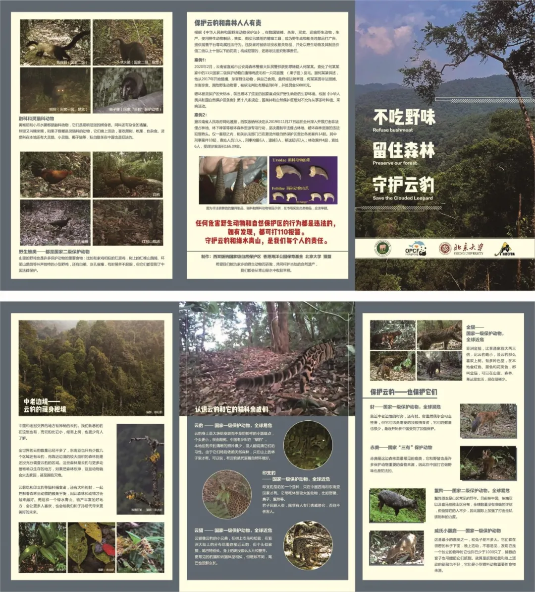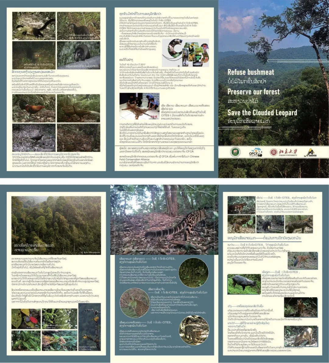 另外一件重要的與國際合作相關的事是宣傳,我們做了很多宣傳摺頁,並且還有老撾語的版本,讓當地人説不管你打雲豹還是看到有人搞茶園都可以打110報警,但是我們希望當地人能記住這是一個獨特的地方,這是一個讓家鄉人自豪的地方。