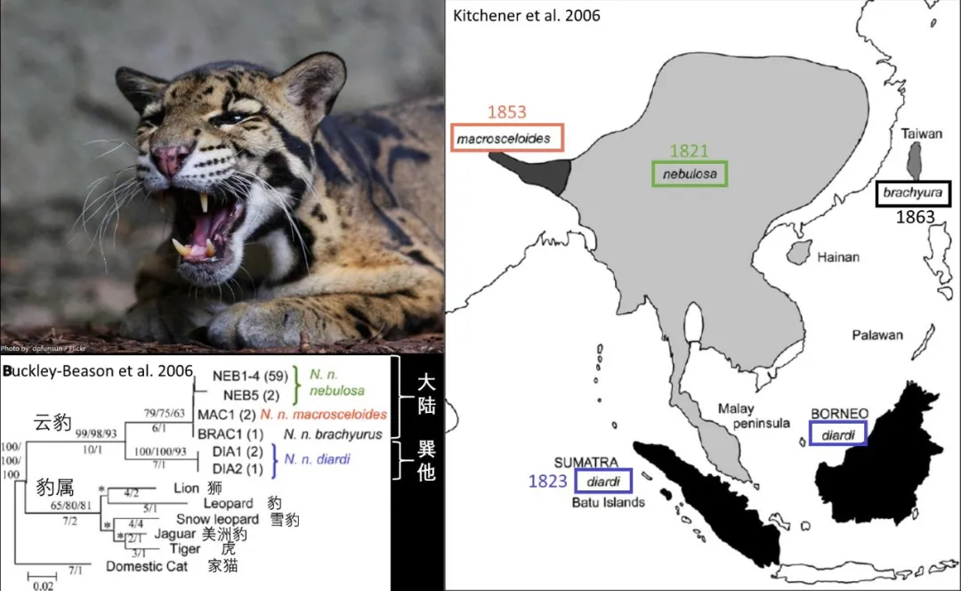 所以到後來2016年雲豹的分子研究發表,當大家從分子上和形態上把雲豹正式定義為兩個物種,巽他雲豹和大陸雲豹時,產自我們中國廣東的雲豹標本失去了模式地位。