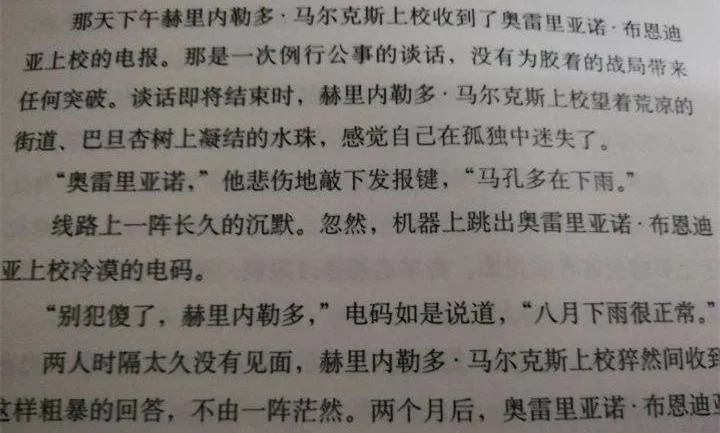 他已飽經風霜,大可以像《百年孤獨》中奧雷里亞諾上校一樣,對於“馬孔多在下雨”的現實,孤獨而無奈地回答道: