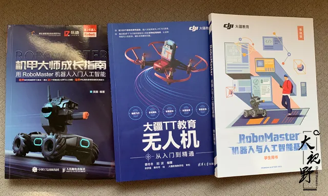 在大疆幫助下,華東師大出版社出版了《機器人與人工智能基礎教程》及《進階教程》,分教師用書和學生用書,人民郵電出版社出版了《機甲大師成長指南》。