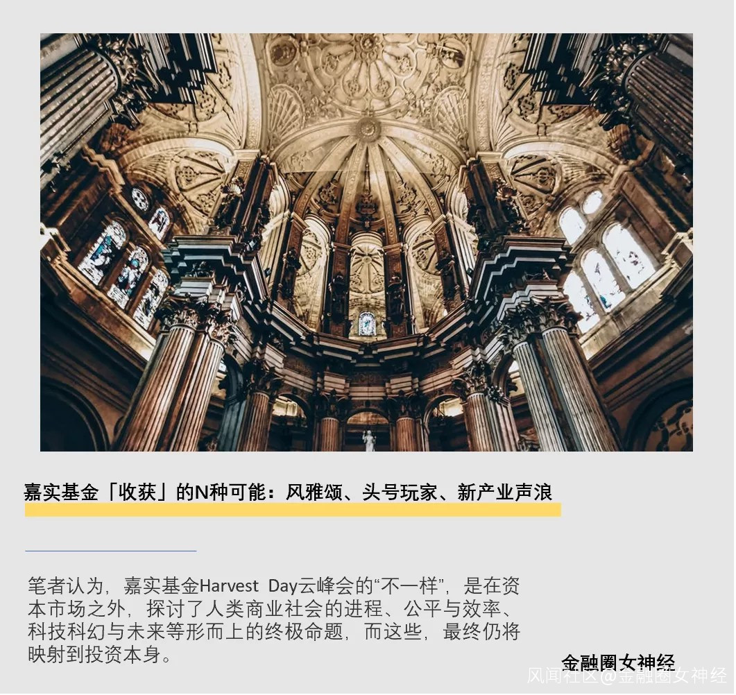 筆者認為,嘉實基金Harvest Day雲峯會的“不一樣”,是在資本市場之外,探討了人類商業社會的進程、公平與效率、科技科幻與未來等形而上的終極命題,而這些,最終仍將映射到投資本身。