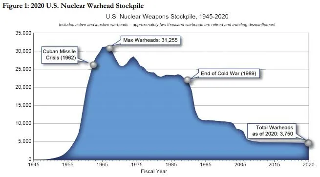 自1945年美國原子彈相繼成功測試和試驗以來,人類就進入了核時代。冷戰時期美蘇各自的核武庫也迅速膨脹到讓人難以直視的地步,然而如果從他國防務機構的報告來看,自冷戰後期至今,雙方核彈數量甚至逐年遞減。這除了國際局勢相對緩和外,也和核武器自身的性質息息相關。