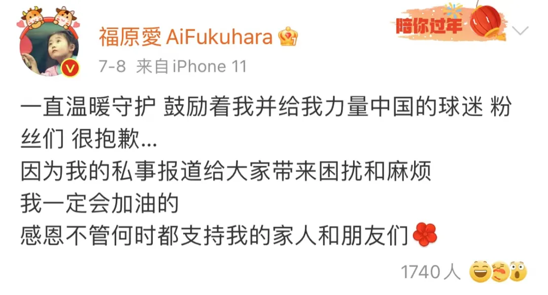 當時因為出軌風波,福原愛在日本遭受了不同程度的網暴,事業也受到了不小的衝擊。不過因為雙方的否認和證據不足,“出軌”一直停留在民間傳言的階段。在風浪逐漸平息後,愛醬選擇了復出。