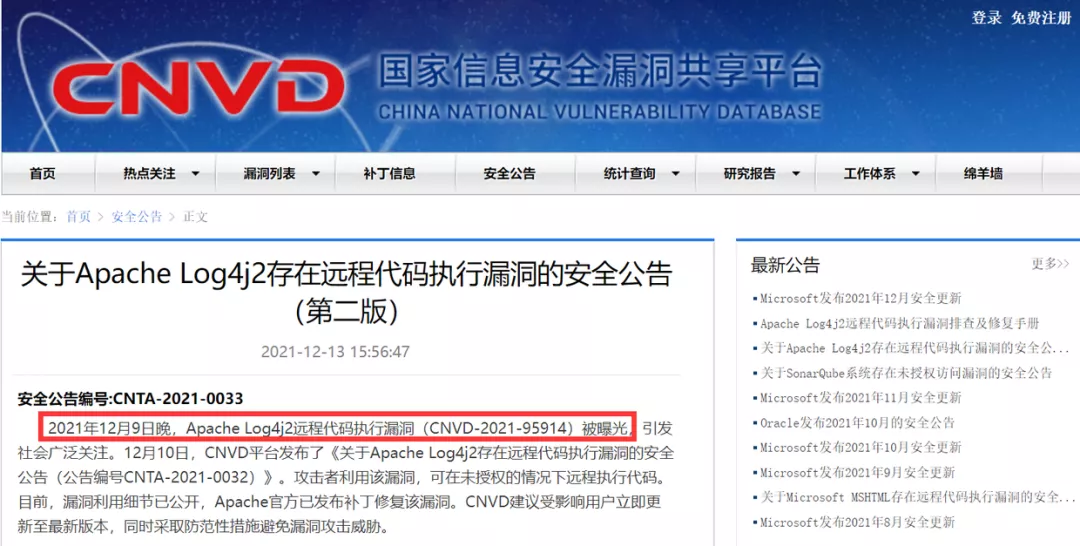 中國國家信息安全漏洞共享平台收錄Apache Log4j2遠程代碼執行漏洞;阿帕奇官方再度發佈log4j-2.15.0-rc2版本修復漏洞。