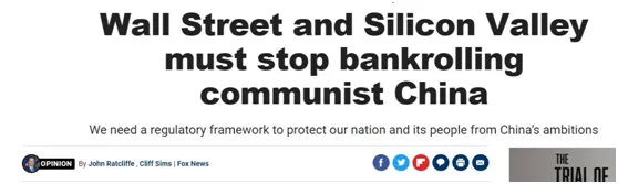 一家保守派色彩濃厚的美媒,兩個共和黨鷹派,再加上大標題,“華爾街和硅谷必須停止為共產主義中國提供資金”……還沒細讀,這套“配置”就已經泛出濃濃的反華味道。