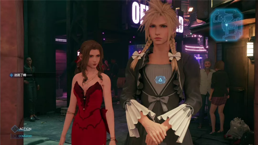 比如説我們的主人公,美少年克勞德在原本劇情中就有一段女裝出演,當時這滿臉委屈的小表情配上本身過硬的顏值就曾讓不少人直呼我可以。只可惜,在PS版本中這段劇情結束後玩家就再沒法讓對此頗為抗拒的克勞德換回女裝,成了個不大不小的遺憾。