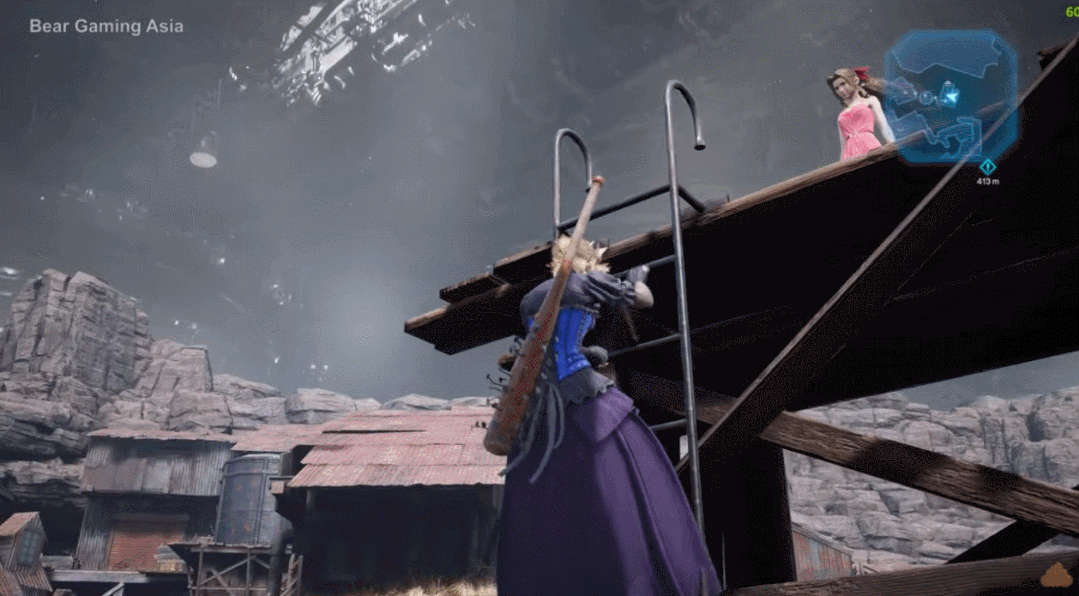 原本僅存在於特定劇情裏頭的女裝克勞德,一下子就成了全場暢享。而由於遊戲中大量CG都是由實時渲染而成,不少CG的畫風也因為這身女裝變得相當奇怪。