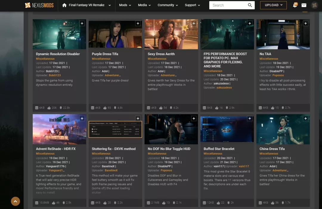 當然,我知道老哥們最想看的其實不是這些。對上古卷軸、輻射等有着大量MOD支持的遊戲有所涉獵的朋友應該知道nexusmods這個知名的MOD網站。就在這幾天,N網已經開設了FF7重製PC版的板塊,供玩家上傳該遊戲的MOD作品。