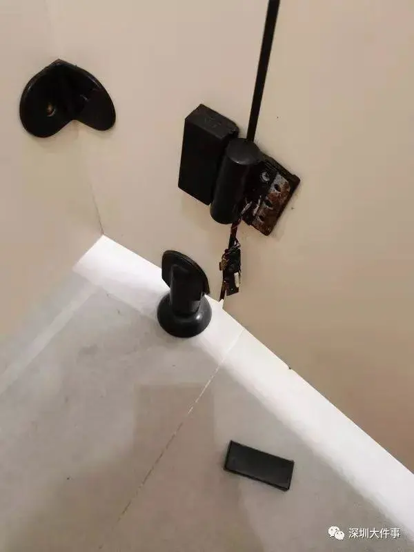 圖為廁所被拆開的合頁,驚現針孔攝像頭