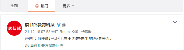 近日,王力宏離婚事件在網上鬧得沸沸揚揚,多個品牌先後與其終止合作關係,其中包括一家二次在港交所提交招股書的讀書郎教育控股有限公司(以下簡稱“讀書郎教育”)。