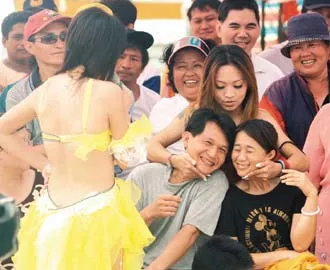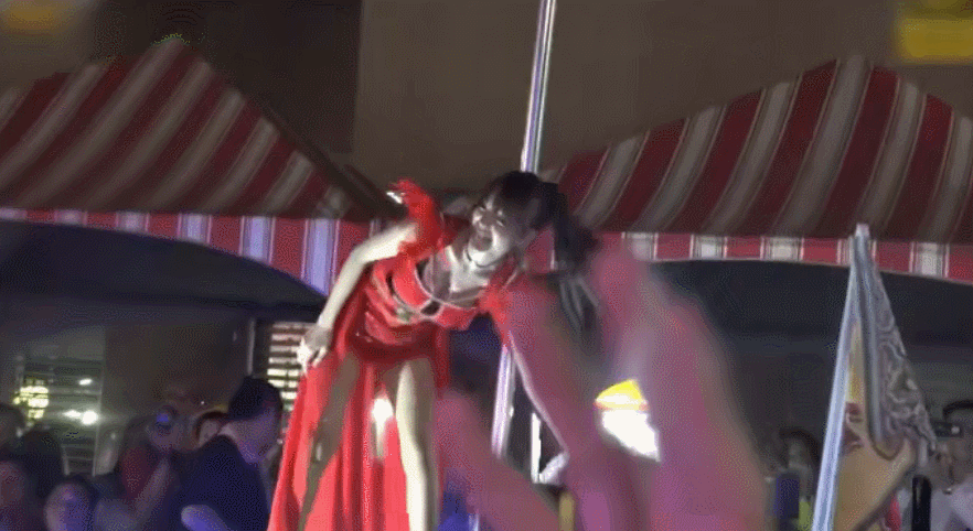 氣氛到了,鋼管舞娘還會主動走下電子花車,跟觀眾熱情互動,把節日的氣氛推向另一個高潮。