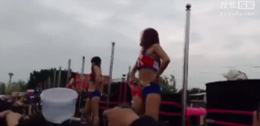 當然最貼心的,還是電子花車上面“送福利”的鋼管舞女郎。