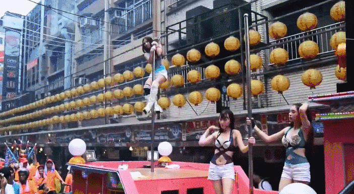 媽祖廟會上的鋼管秀,在台灣是一種常態。