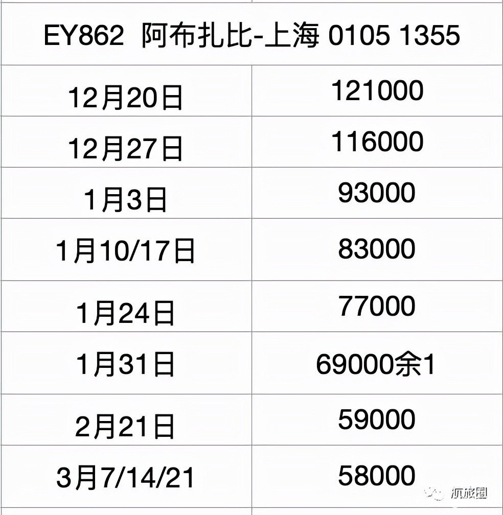 上表為旅行社發來的阿提哈德航空近期回國票價