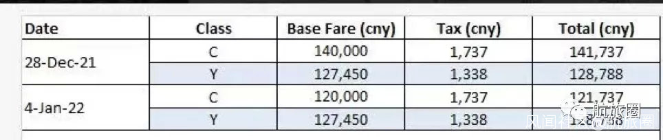 然而,土航同一時間發給票代的價格表,則有1月4日的經濟艙在售,但價格超過12萬,不僅高於官網在售的商務艙,甚至還高於了給票代的價格表上的商務艙,形成經濟艙與商務艙價格倒掛的“奇觀“。