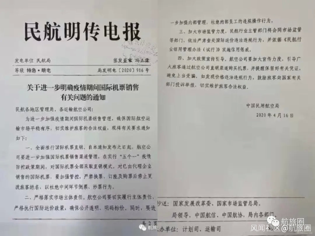 早在去年上半年,中國民航局就曾下發《關於進一步明確疫情期間國際機票銷售有關問題的通知》,要求在實行“五個一”疫情防控政策期間,對國際機票全部採取直銷模式,對已由代理企業銷售的國際機票加強管控,杜絕中間環節到票,炒票行為。
