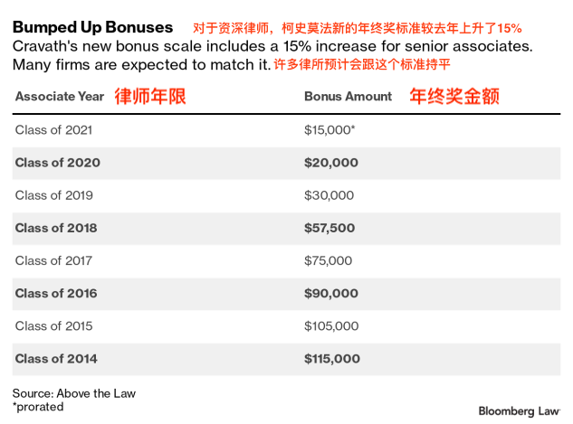 除此之外,為了防止「市場」混亂,美國大部分律所的年終獎,都會依照柯史莫法(Carvath, Swaine &Moore LLP)律所的標準來定製。